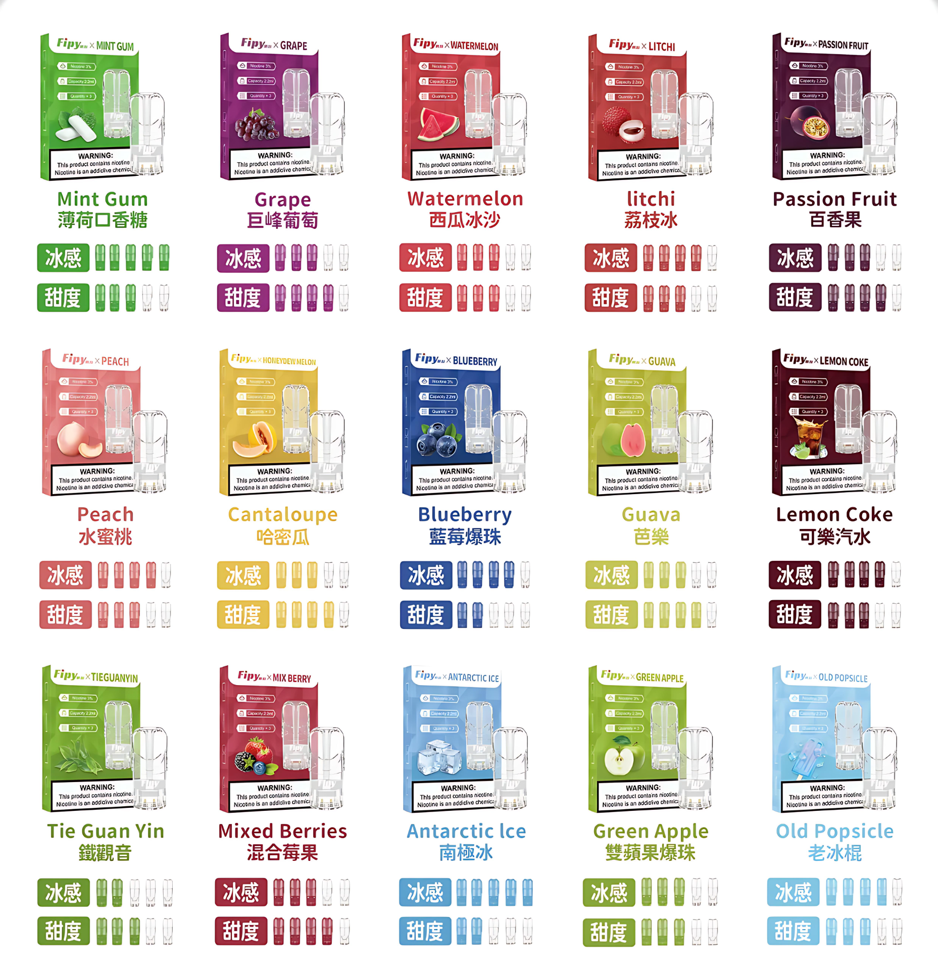 | 口味名稱 | 口感說明 | 涼度 | 甜度 |