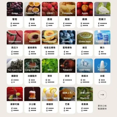 涵蓋清爽水果、飲品系、奶香甜品與冰涼薄荷等多種口味選擇,滿足不同用戶口味需求。